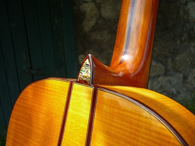 The fretboard is surely one of the first radiused flamenco fretboards in the world; it is more ergonomic for the left hand and also helps the right hand to separately play bass and treble strings in rasgueos.