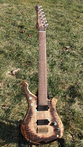 Walnut body, live edge quilted maple top, Burnburst/oil finish