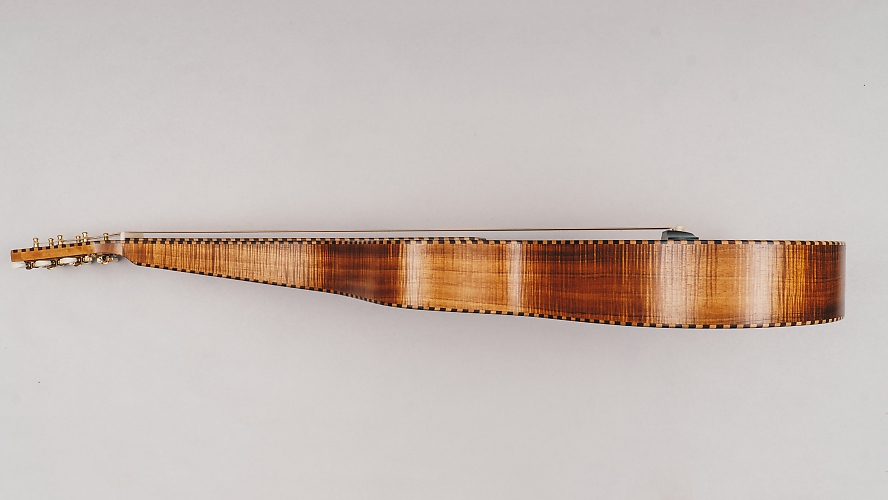 Without a doubt the most stunning Hawaiian Koa I've ever had the privilege of working with. Visually stunning with jaw-dropping flame throughout and both light and stiff making for a truly amazing sounding Weissenborn guitar. The master (AAAAA) grade Koa is capped off with stunning cast bronze Waverly tuning machines and matching Waverly bridge pins and end pin.